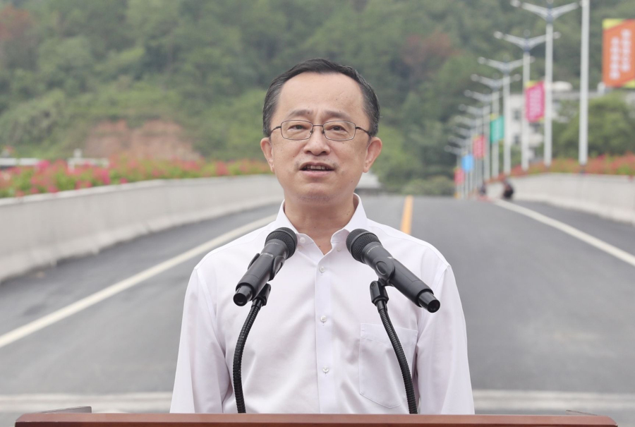 梅州市委書(shū)記、市人大常委會(huì)主任陳敏宣布大橋竣工通車