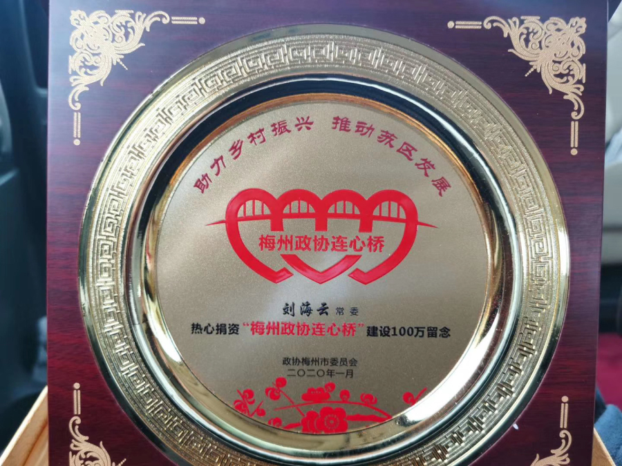 梅州政協(xié)連心橋捐資紀(jì)念牌——?jiǎng)⒑T瞥N?