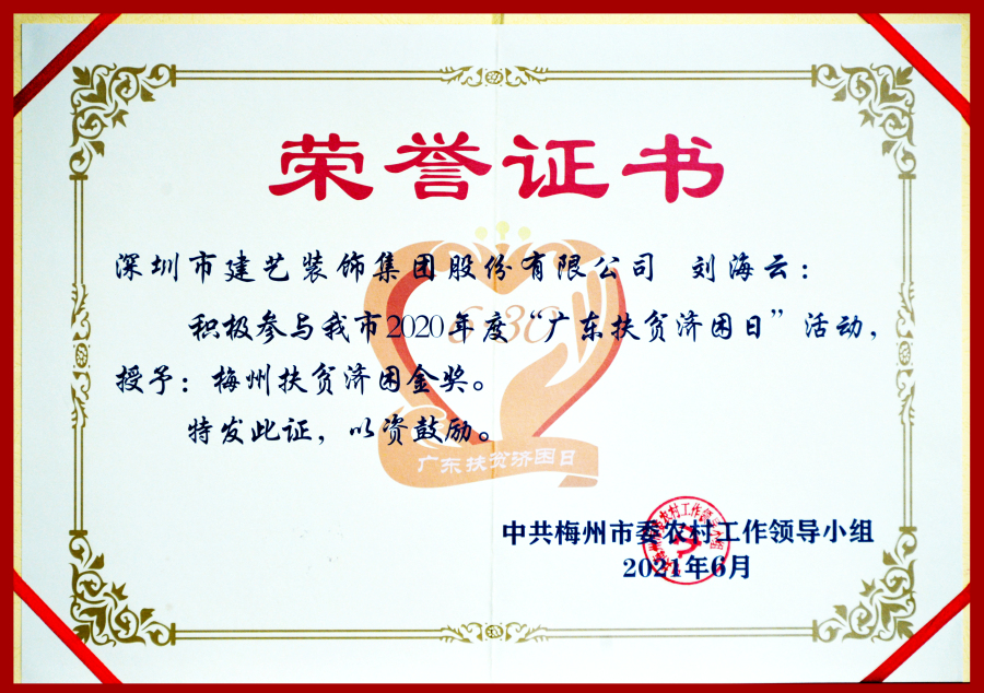 【建藝動態(tài)】鞏固脫貧成果,助力鄉(xiāng)村振興——建藝集團(tuán)獲2020年度廣東扶貧濟(jì)困榮譽(yù)表彰