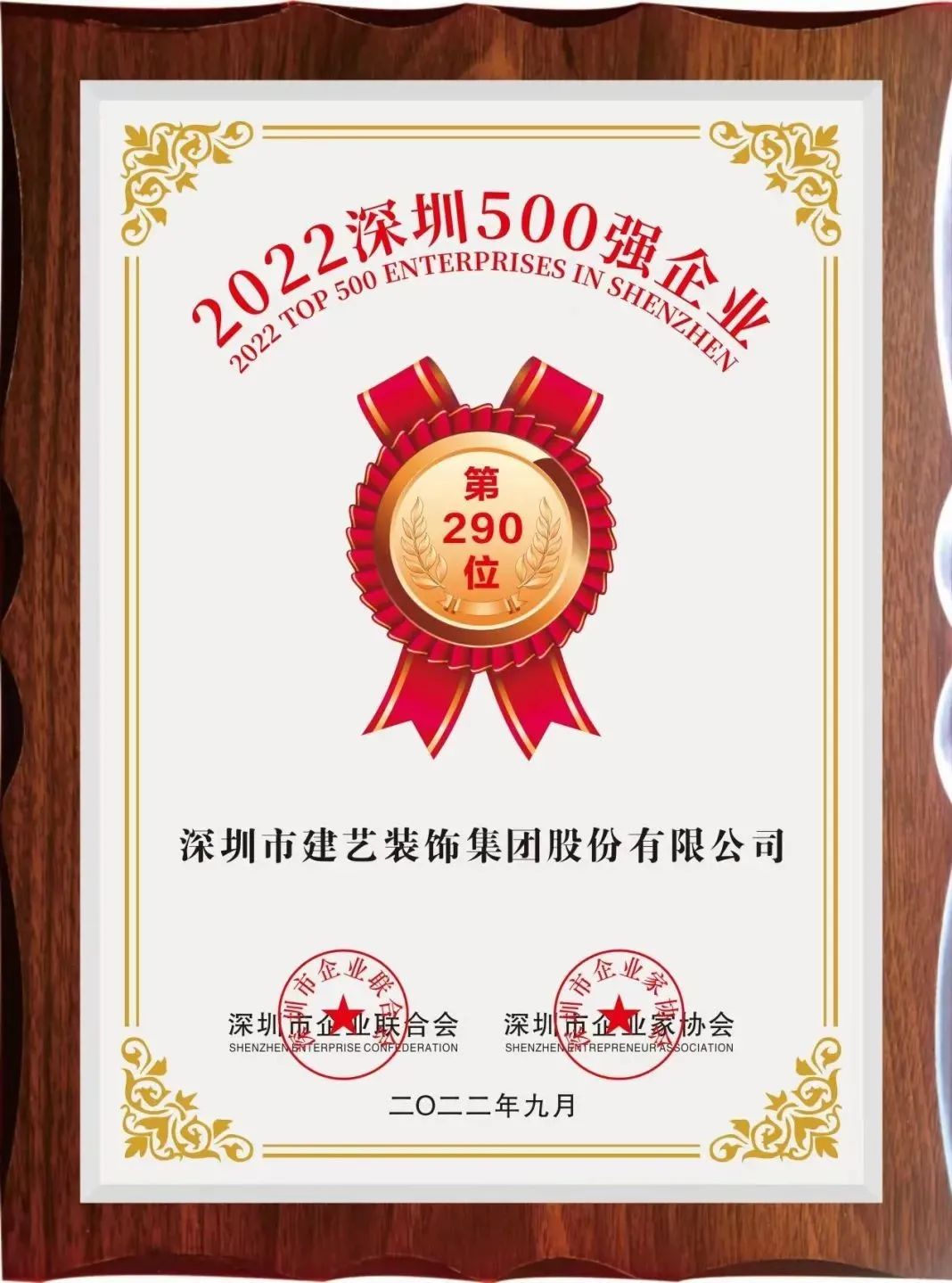 9月21日,深圳市企業(yè)聯(lián)合會(huì)、深圳市企業(yè)家協(xié)會(huì)發(fā)布“2022深圳企業(yè)500強(qiáng)榜單”及《2022深圳500強(qiáng)企業(yè)發(fā)展報(bào)告》。中國(guó)平安、華為、騰訊等多家知名企業(yè)上榜,深圳市建藝裝飾集團(tuán)股份有限公司(股票代碼:002789)憑借行業(yè)引領(lǐng)力、品牌影響力、社會(huì)責(zé)任擔(dān)當(dāng)?shù)染C合實(shí)力,再度蟬聯(lián)“深圳500強(qiáng)企業(yè)”。自2017年至今,建藝集團(tuán)已連續(xù)五年榮登500強(qiáng)企業(yè)榜單。