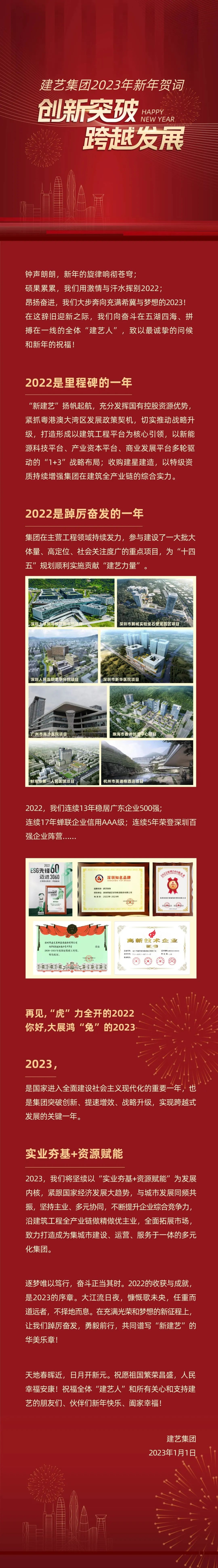 建藝集團2023年新年賀詞:創(chuàng)新突破,跨越發(fā)展!